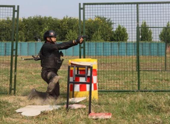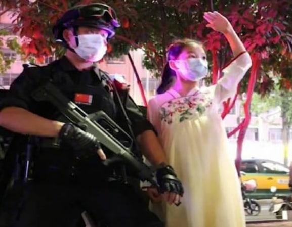 一個(gè)小女孩走到王林濤的身邊,詢問是否可以跟他合影。王林濤見狀下意識的把槍口壓低,并且用另外一只手小心翼翼的捂住了槍口,避免槍口碰到小朋友。在與小朋友進(jìn)行合影的時(shí)候,還采取了半蹲的姿勢,合影時(shí)小朋友采用了少先隊(duì)隊(duì)禮回應(yīng)了王林濤,合影之后開心的離開。
