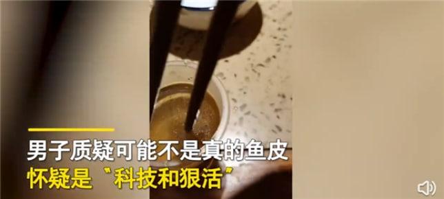 在湖南長沙的時候,一位網友參加婚禮的時候,隨了200塊錢的禮金,吃了一頓結婚的大餐,其中就有一道涼菜叫做涼拌魚皮。他將魚皮在鍋中涮了涮,發現魚皮一下子不見了,于是這位網友覺得這魚皮簡直就是科技。