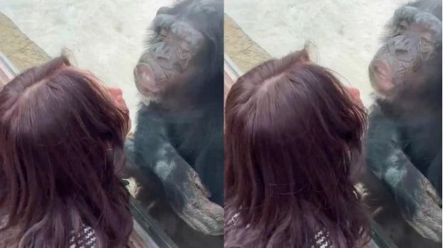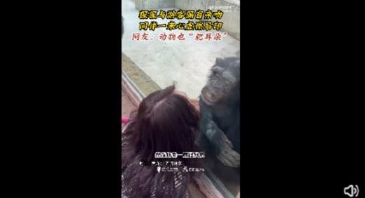 導(dǎo)讀 在黑龍江齊齊哈爾市動物園里一只雄性黑猩猩在和女游客隔著玻璃做出親吻互動的一幕,雙方正在互動的時候突然被雄性黑猩猩的媳婦撞見雄性黑猩猩立馬發(fā)現(xiàn)不對,還非常人性化的將玻璃上的唇印偷偷的擦掉,當(dāng)事人關(guān)女士在發(fā)布視頻了解到,工作人員表示這一對黑猩猩是一對夫妻,但是這只雄性黑猩猩對于游客中的美女非常喜歡,于是自己就非常好奇去挑逗了一下他與他隔著玻璃進(jìn)行了一次親吻互動。