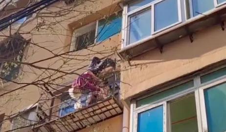 導讀 最近一女子正在路上行走,偶然的一次抬頭去看見了讓她心驚肉跳的一幕,就在一旁的小區樓14樓的位置,有一個老人懸掛在陽臺之外。
