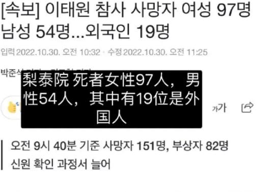 導(dǎo)讀 11月29日晚上在韓國的首爾發(fā)生了一件悲慘事件,當(dāng)晚在韓國說梨泰院參加節(jié)目的人群發(fā)生了大規(guī)模的踩踏事件,這個(gè)事故也是造成了100多人的死亡,并且受傷人數(shù)也是高達(dá)幾百人。
