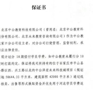 在11月14日有人爆料,北京中公教育科技有限公司蓋章發(fā)布了一份“賣樓還錢”的保證書,在前幾日的時候海報新聞就刊登了一篇《以“不過包退“的中公教育正在面臨退費難的困境》,這篇報道在當時引發(fā)了非常廣泛的關(guān)注。