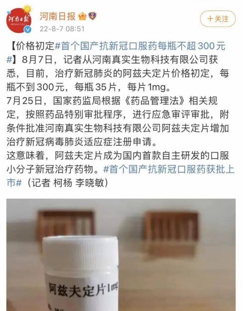 阿茲夫定片是一款由真實生物開發的用來治療新冠病毒的口服用藥,也是唯一一款國產的治療新冠口服藥,是在今年7月25日的時候被國家藥監局批準,用于新冠的治療方案,可以用來治療新冠肺炎的成年患者,在今年7月的時候,這是生物,發布了一則消息稱,根據臨床實驗的結果,在患者服用此藥7天的時間,癥狀明顯改善,從8月份開始,阿茲夫定片開始正式投產,預計年產量可達30億片。