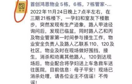 據(jù)記者了解,網(wǎng)傳發(fā)生此事件的小學(xué)是重慶市首創(chuàng)鴻恩國際小區(qū),在11月25日的時候,記者通過一名目擊者得到了此事真正的事發(fā)過程,這位目擊者是時,于是陳女士向記者表示當(dāng)時是在24日的晚上,自己所在的小區(qū)內(nèi)有一名孕婦,正在散步的時候,突然就要生了,可能是早產(chǎn),自己所在小區(qū)當(dāng)時也正處在疫情封控期間,但是仍有很多人都看到了,急忙幫這名孕婦撥打了120和120。