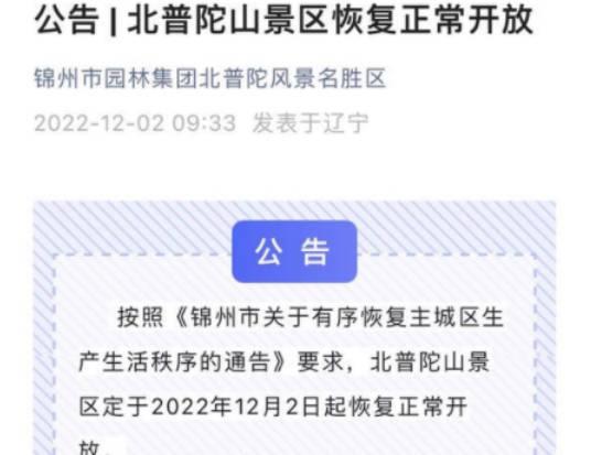 截止到目前,因為錦州商場餐廳的工作人員稱,自己的店鋪已經恢復了堂食,而且商城別很多的餐廳都已經陸陸續續開始恢復堂食,不過大家的必定時間相對提前了兩個小時,除此之外錦州的一大部分景區也都在媒體上發布了開放公告,錦州市園林集團北投了風景名勝區,通過自己的公眾號在社交平臺上發布稱,將會在2022年12月2日起正常向游客開放。