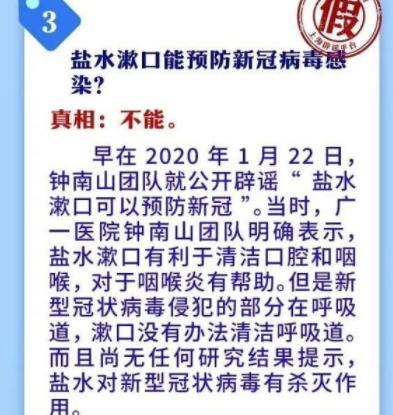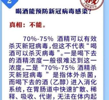 曾經有人發謠言稱,喝酒精可以預防感染新冠病毒這種說法是錯誤的,酒精可以消滅新冠病毒,但是喝酒精不代表就可以消滅體內的病毒,酒精的度數極高,一般都在70~75%左右,度數極高,喝進去也會對人的身體產生不同程度的損害,這些還有人傳言說經常用鹽水漱口可以有效預防新冠對于這種說法鐘南山,團隊就曾經做過辟謠,這次病毒感染的是呼吸道而用鹽水漱口,只能清除口腔和咽喉部的細菌,并沒有辦法清理呼吸道,所以這種說法是謠言。