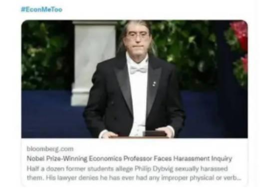 2022年諾貝爾經濟學獎的獲得者是菲利普.迪布維克,迪布維克曾經在中國西南財經大學擔任為期11年的金融研究院院長,令人大跌眼界的是僅僅在獲得諾貝爾經濟學獎,幾個月之后,此人的風評出現了大反轉,被有人爆出,曾經在其任職期間騷擾多名中國女學生,根據彭博社發出的文章中表示這種騷擾的行為一直持續了10年之久。