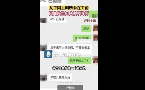 這個男領導正在通知開發組的同事開會,看到該女子沒在工作崗位,所以就發信息問去干什么了,女子回答去廁所了,最后這位男領導就跑到女廁所門口,讓女子快點兒,女子在微信中和男領導表示肚子不舒服,而男領導的回答卻是肚子不舒服可以請病假,不要影響工作,該女子回了一句,難道連廁所也不能上嗎。