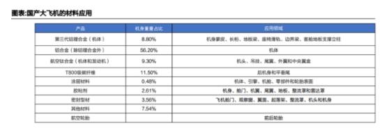 涂層材料在飛機(jī)上是非常重要的,一種生產(chǎn)材料主要包括了機(jī)艙內(nèi)的涂層和柔性機(jī)翼涂層以及絕緣涂層, C919大飛機(jī)上的涂層,市場(chǎng)容量達(dá)到了3225,萬元主要包括了昊華科技,松青股份,飛鹿股份,東來技術(shù)等相關(guān)的公司企業(yè),除此之外還會(huì)帶動(dòng)交接技術(shù)和生產(chǎn)鋁合金的中國(guó)鋁業(yè),南山鋁業(yè),神火股份等公司的發(fā)展。