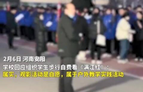 在2月6日,位于河南安陽的文昌實(shí)驗(yàn)中學(xué)組織800多名學(xué)生徒步自費(fèi)觀看電影滿江紅,之后需寫觀后感,此話題一度在網(wǎng)上引起眾網(wǎng)友的熱議和強(qiáng)烈關(guān)注,之后一些該校的學(xué)生也在網(wǎng)絡(luò)上吐槽,在2月6日上午,文昌實(shí)驗(yàn)中學(xué)的一名負(fù)責(zé)宣傳工作的人員表示,這次學(xué)校組織徒步觀影的事情確實(shí)屬實(shí),學(xué)生自愿參加此次活動(dòng),這是屬于一次戶外的教學(xué)實(shí)踐活動(dòng)。
