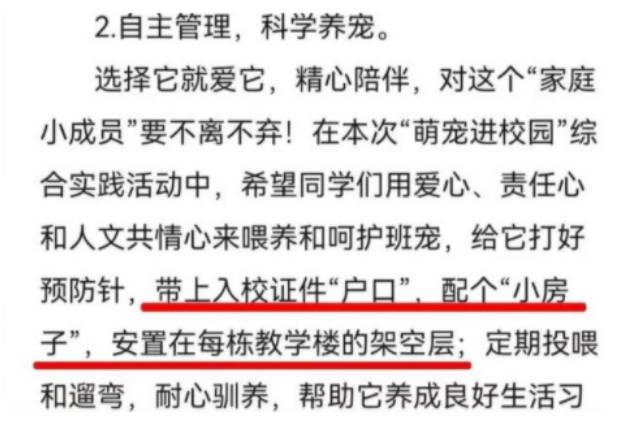 關于南寧二中可帶寵物上學的話題,一度在網上引起了熱議和關注,之后校方作出回應,稱確實正在舉辦這項活動,并表示學生帶寵物進校園內,不僅要遵守文明養寵公約,還要求學生學會自主管理寵物,學會科學喂養,給寵物帶來最精心的陪伴,希望學生們對自己的小寵物有愛心和責任心。