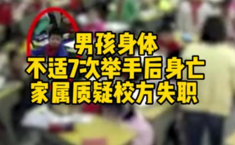根據郭父提供的教室監控方面顯示,在2020年11月5日,這家涉事學校的某教師中,在上午10:21~10:31之間,一名穿藍色衣服的男孩有7次舉手示意表示自己身體不適,但任課老師并沒有將男孩帶離教室,在男孩第7次舉手的時候,老師只是和男孩簡單的說了幾句,事情發生后,同班的一些學生告訴男孩的家長說當時老師和男孩說讓其先忍忍,還讓記趴在桌子上休息。
