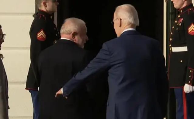在新聞媒體報道的視頻中,顯示巴西總統盧拉乘車抵達白宮,下車后與正在迎接自己的美國總統拜登握手,之后又向拜登介紹了自己的夫人羅桑杰拉,之后又和拜登共同走向白宮門前,到了白宮門前別人又在媒體的鏡頭面前握了手,然后盧拉轉身走向白宮,之后引發熱議的一幕出現了,拜登主動拉起了身邊羅桑杰拉的手,并牽著他走進白宮。