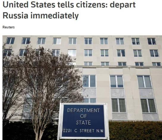 美國駐俄羅斯大使館于當地時間2月22日發布公告稱由于俄烏沖突的后果不可預測,俄羅斯政府的執法機構,可能會對美國公民進行任意逮捕或騷擾,敦促美國公民立即離開俄羅斯。