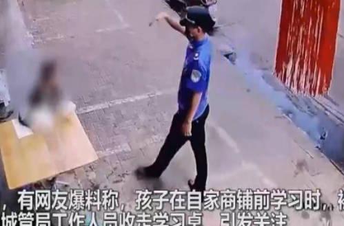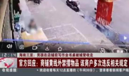 2月11日海南三亞,一段監控畫面引起人們的熱烈關注,畫面中的小男孩正在店鋪前面的桌子上寫作業,此時幾名身穿制服的執法人員走來,其中一人向小男孩招了招手,讓小男孩離開以后,將小男孩用來寫作業的桌子收走,視頻公布以后,引起許多網友的質疑,認為這種執法方式并不合理。