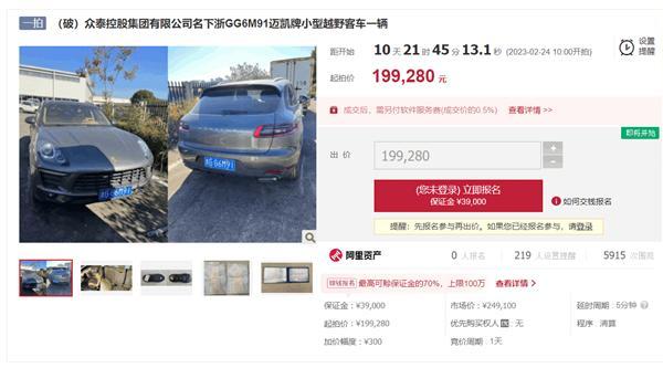 眾泰汽車眾泰汽車隨著破產(chǎn)重組,在國內(nèi)的生存環(huán)境愈發(fā)艱難,集團旗下的很多資產(chǎn)開始被債權人拍賣。阿里司法拍賣平臺上于日前上架拍賣了一輛保時捷Macan,起拍價格是19.9萬元,引起的圍觀數(shù)多達5000多次。