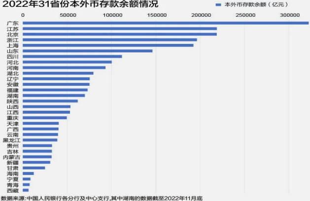 截至2022年11月底,廣東省本外幣存款余額達到32.24萬億元,是全國唯一一個突破30萬億元的省份,第二名是江蘇省,存款數據達到21.87萬億元,北京市緊隨其后差距并不大。北京、上海擁有著很多金融機構,在資金總量上有著明顯優勢,雖然存款余額排名高,但GDP相對而言會有些差距??偨洕陌l達也決定了本外幣的存款余額,經濟越發達資金量就越雄厚,從存款余額排行中能看出,很多地區的存款增速較快,也反映出當地的經濟發展水平。