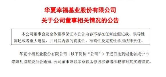 2月14號華夏幸福發布公告稱,近日接到湖北省咸寧市崇陽縣監察委員會的通知,稱該公司的董事兼聯席總裁孟驚因為涉嫌違法犯罪,即將被實施留置處罰。有知情人士透露,孟驚被帶走調查一事,在春節以前已經開始,這一事件涉及到李鐵的足球腐敗案。經過多年的時間發展,孟驚一直兼任華夏幸福足球俱樂部的董事長職位,而李鐵在2015年7月份曾經出任河北華夏幸福足球俱樂部的常務副總和體育總監,兼任中方教練組組長。