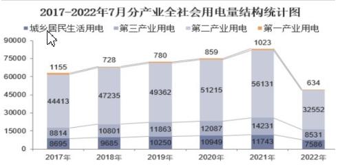 我國的1-12月份,全國全社會用電量達到86372億千瓦時,同比增長達到3.6%,分產業來看,在1-12月份的第一產業用電量達到1146億千瓦時,同比增長10.4%;第二產業的用電量57001億千瓦時,同比增長達到1.2%;第三產業的用電量為14859億千瓦時,同比增長達到4.4%;城鄉居民的生活用電量達到13366億千瓦時,同比增長為13.8%。