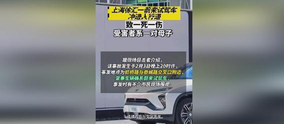極目新聞的報道顯示,近日一名女子在上海試駕一輛蔚來汽車時,汽車突然沖向人行道上,撞到了一對母子,導致一死一傷。根據蔚來汽車的工作人員表示,該名試駕女子可能在試駕車輛時,看到現場的人員密集,一時心慌將油門當成剎車,導致釀成慘劇。在2月3號晚上8點左右,上海虹橋路和恭城路交叉口附近發生了一起車禍,未來空間港匯恒隆廣場店內的一輛試駕汽車突然沖向人行道,導致一對女子受傷,經過后續調查,母親已經不幸身亡,而兒子落下重傷。對于事情發生的原因,還在調查當中。