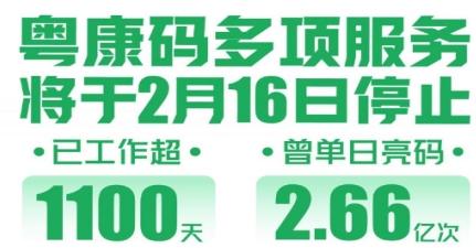 南方都市報的消息顯示,在2月份中旬,粵康碼發(fā)布的最新公告稱,按照目前國家新冠病毒的感染防控政策,抗原自測、電子證照以及防疫工作臺等服務(wù)將會在2023年2月16日11時停止服務(wù),上述服務(wù)將會被銷毀,徹底刪除所有服務(wù)數(shù)據(jù)內(nèi)容。截止到現(xiàn)在,粵康碼已經(jīng)累計工作超過千日,根據(jù)數(shù)字廣東的工作人員表示,在疫情三年的時間里,粵康碼單天的亮碼次數(shù)最高曾經(jīng)達(dá)到2.66億次,為疫情防控做出重要貢獻。從疫情開始之初上線的粵康碼,到停止多項服務(wù),這中間經(jīng)歷漫長的過程。