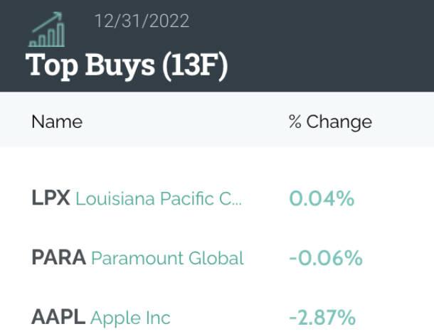 增持方面,2022年的第四季度,伯克希爾增持的三只股票分別是蘋果、派拉蒙,以及建筑產品的制造商路易斯安那太平洋公司。在2022年第四季度中,增持了蘋果33萬的股票增長至8.9億股,在持倉中的整體比例上升,調整至38.9%,在市值方面已經達到了1,163億美元,在持倉方面穩居第一,對于派拉蒙也增持了240萬的股票,總價值已經超過了4,000萬美元。