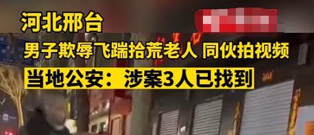 近日河北邢臺,內丘縣的一名拾荒老人被另外3名年輕人欺辱,其中有兩人在圍攻老人,另外一人在旁邊拍攝視頻,在16日內丘縣公安局表示打傷老人的三人已經被找到,并下達拘留通知,視頻中的內容顯示,一名身穿大衣的老人手持白色布袋,站在路邊,突然被一個戴帽子的年輕男子從背后猛踹一腳,老人毫無防備倒在地上,發布視頻的人稱自己從朋友圈看到這個視頻,視頻中的老人常年在街道撿拾垃圾和煙頭,而視頻中的行為明顯是蓄意而為,有人負責拍攝視頻,有人負責踹飛老人。