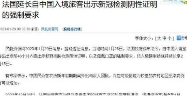 根據新華社巴黎2月16日電表示,中共中央政治局委員、中央外事工作委員會辦公室主任王毅在巴黎同法國總統外事顧問博納共同主持第二十三次中法戰略對話時,雙方一致認為目前中法兩國關系的健康穩定發展,對兩個國家同樣具有深遠意義,在一致同意發揮元首外交的重要作用時,決定取消對來自中國旅客的入境限制措施,王毅對這項舉措表示歡迎,認為這一舉動有利于兩個國家之間的貿易往來和人員交流合作,為中歐關系的發展注入新動力,給世界穩定性提供保證,有利于共同應對全球挑戰。