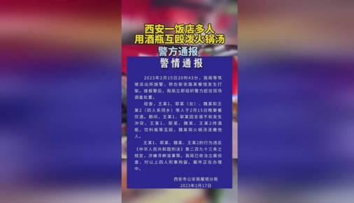 近日網友在網上曝出一則視頻,該視頻顯示在2月17日陜西西安家火鍋店當中發生打架案件,在視頻內容當中有多名男女用酒瓶開始互掄,甚至出現有人又滾燙的火湯鍋直接向對方潑過去,目前警方已經介入調查,證明確有其事,具體過程正在調查之中。