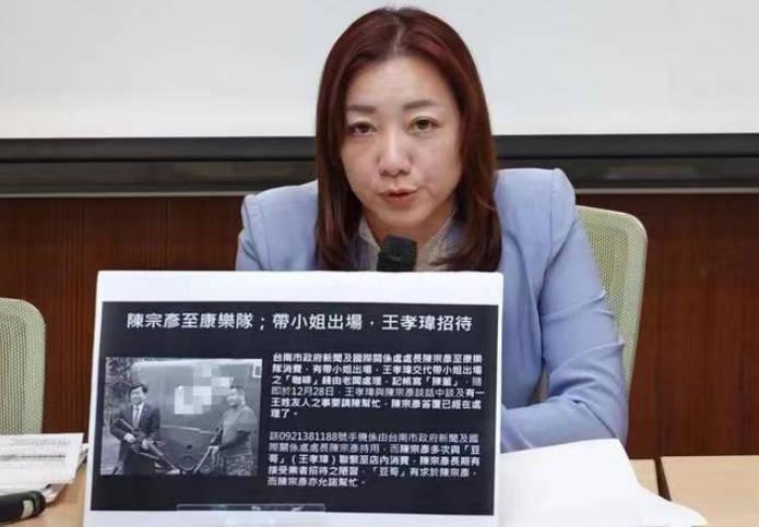 在記者會上指出行政院發言人陳彥宗在臺南市政府任新聞處處長時與酒店業者“豆哥”王孝瑋二人關系親密。兩個人曾經多次出入一些有小姐的場所,而且費用都會以另一個人的名字記賬。在記者會期間,為了能夠讓群眾相信這個事實,還貼出了對應的聊天截圖。