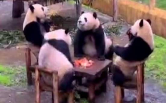 北京時間3月12日一則關于大熊貓的視頻迅速火遍全網,只見視頻中4只大熊貓圍坐在一張桌子上吃美味的食物,視頻一經發布就迅速引起了網友之間的熱烈討論。
