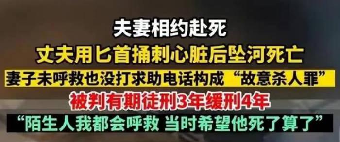 對婚姻忠誠是夫妻雙方應(yīng)盡的夫妻義務(wù),該起案件的起因就是因為張某懷疑自己的老婆陳某和他人存在不正當(dāng)?shù)哪信P(guān)系,懷疑妻子出軌,還懷疑自己妻子患有某些疾病而導(dǎo)致張某情緒失控想用刀自殺。后經(jīng)妻子勸解情緒平靜之后,張某向自己的老婆陳某提出了共同頭和赴死的想法,陳某應(yīng)允之后第二天他們來到了一座大橋的中間,張某首先掏出刀捅向了自己的心臟部位,隨后就跳躍欄桿直接投河自盡,陳某看著張某在落水之后不斷的掙扎,但是陳某某并沒有立即跳河自盡,同時也沒有向過往的人群呼救也沒有撥打110或者120的求助電話,而是放任張某在水里面掙扎自己直接離開,后來經(jīng)過法醫(yī)鑒定張某是因為生前溺水導(dǎo)致死亡。
