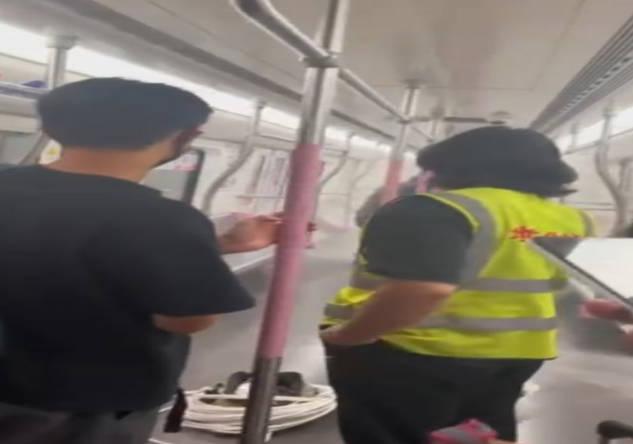 在下車之前工作人員還拿著滅火器掃視了整個車廂一分多鐘左右。確認了隱患消除之后,這些工作人員才離開,但是大多數的乘客都比較慌張,有人在奔跑的時候還將物品掉落一地。客服表示現場情況已處理完畢,所掉落的物品都已打掃干凈,并沒有影響地鐵2號線運行。對于背包冒煙的具體情況,他們還沒有掌握更多的消息。